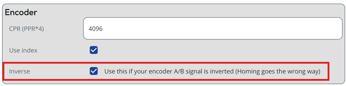 Keep in mind that this does not reverse the calibration or index‑search direction. Those still require swapping two motor phase wires, as there is no software workaround for that part.
