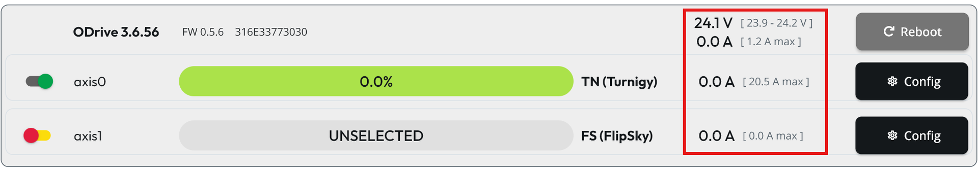 - Current drawn by the ODrive board